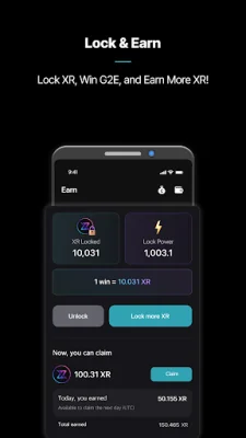 The Lock & Earn feature allows users to lock XR, win G2E, and earn XR rewards. The higher the user's Lock Power from locking XR, the greater their earning rate increases. Users have the freedom to lock or unlock XR at any time. This feature allows users to experience the real Guess2Earn and earn XR rewards for their G2E skills.