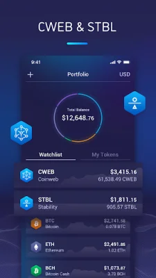 One of the unique features of the Coinweb Wallet is our ability to offer traditional banking methods for purchasing digital assets. This is made possible by our regulatory umbrella, which allows for easy conversion of common currencies to our native tokens, CWEB and STBL. This makes it simple for users to enter the market and have a seamless experience.