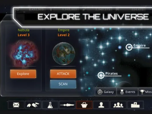The game's universe is vast and filled with various elements to explore. Players can navigate through planets, asteroid fields, debris, nebulae, and stars using specialized ships like the mighty Freighter. The game also features a unique aspect where all players are in one universe, eliminating the need for server selection. This allows players to interact and compete with millions of other players, creating a dynamic and engaging gaming experience.