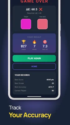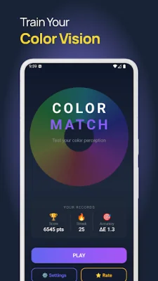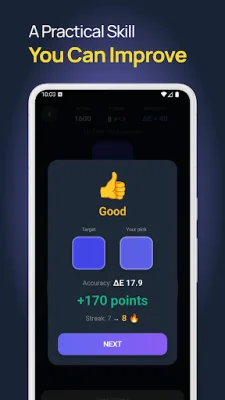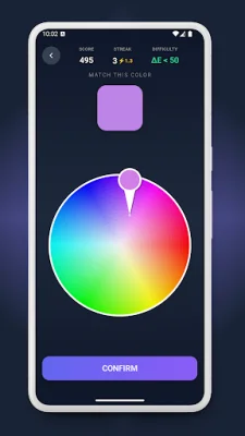 As you play, you can track your progress and see your performance evolve. By minimizing "near misses" and improving your best ΔE, you can climb to a higher score and master the color wheel. Color Match is not just a game, but a visual perception test that fits in your pocket and offers endless opportunities for practice and improvement. Are you ready to test your eyes and become a color matching pro?