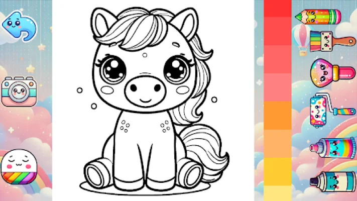 - 8 unique categories to explore, including Farm (free), Aqua, Food, Garden, Jungle, Monster, Transport, and Tropical Island, each with 20 adorable coloring pages to choose from. - A vibrant color palette with 41 stunning colors, including glitter brushes for that extra sparkle. - Various creative tools such as pencils, brushes, glitter tools, spray cans, and patterned rollers to enhance your child's coloring skills. - Simple controls that make it easy for kids to start coloring right away. - The ability to save your child's artwork to the gallery with just one tap.
