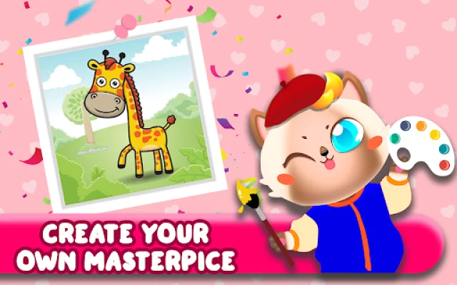 "Free mode" allows users to freely express their creativity by drawing, doodling, and coloring without any restrictions. This mode is perfect for unleashing one's imagination and creating unique artwork. In "Glow coloring mode," users can create magical doodles using neon paint. This mode is a great way to explore the world of color and create vibrant and eye-catching artwork. The app is designed for the whole family, including parents and children, to have fun together. With a variety of tools and activities, there are endless possibilities for entertainment and bonding. Children can learn and practice their writing skills by tracing the alphabet and numbers. They can also learn about different shapes, animals, and transportation through coloring and drawing. With over 100 beautiful stickers, users can decorate their artwork and make it even more special. This app promotes the development of imagination, artistic skills, and concentration, while also improving fine motor skills in children. Users can save their creations in an album and edit them at any time. They can also share their artwork with family and friends through various social media platforms. In addition to drawing and coloring, the app offers other fun activities such as playing drums, popping balloons, creating fireworks, learning colors, and more. These activities are not only entertaining but also educational. The app also includes a pixel art feature, which helps develop spatial recognition and allows users to create fun characters pixel by pixel. This feature encourages originality and creativity in users.