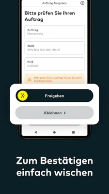 Das App2App-Verfahren ermöglicht es Ihnen, Transaktionen in anderen comdirect-Apps durchzuführen. Während des Freigabe-Prozesses öffnet sich automatisch die photoTAN App, in der Sie den Auftrag bestätigen können, indem Sie den Pfeil von links nach rechts schieben.