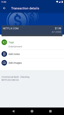 The app also allows you to add tags, notes, images, and geo-information to your transactions. This means you can customize your transactions and add helpful details, such as a photo of a receipt or check, to make it easier to find what you're looking for when searching through your finances. This feature is great for those who like to stay organized and have a clear overview of their spending.