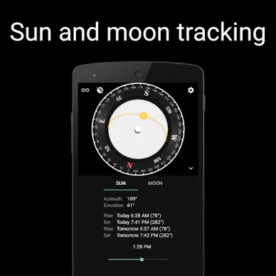 In addition to the compass modes, the app also provides information on the positions of the sun and moon, as well as their respective rise and set times. This can be especially useful for outdoor activities or planning your day around natural light. You can also access moonrise and moonset times, providing even more insight into the lunar cycle.