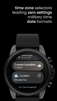 It's important to note that the Sunrise & Sunset Complication requires coarse location permission to be enabled in the app's UI. If the location is not available, the app will not collect it in the background. Additionally, the Moon Phase Complication will adjust the Moon Icon angles based on the observer's position for a more accurate visual.