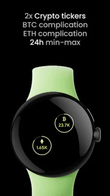 The app also offers Crypto Complications for Bitcoin and Ethereum, displaying their current prices in USD. Users can tap on certain custom complications to launch different activities, such as setting time zones, adding alarms, accessing the calendar, launching Google Pay or Assistant, and refreshing the latest crypto prices.