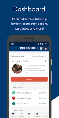 In summary, this application offers a convenient and secure way for Consumers Credit Union members to manage their finances. With features such as viewing account balances, transferring funds, paying bills, depositing checks, and locating nearby offices and ATMs, members can easily stay on top of their finances and make transactions with ease. Enrolling in Online Banking and downloading this app is a simple and efficient way for members to take control of their finances and have peace of mind knowing their transactions are safe and secure.