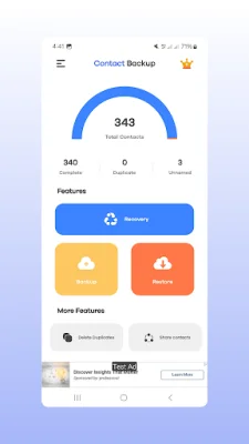 Contact Backup is an essential tool for anyone looking to keep their contacts safe, organized, and easily accessible. This user-friendly app offers a variety of features to help you manage your contacts with ease and peace of mind. Whether you need to create backups, restore deleted contacts, remove duplicates, or share your contacts, Contact Backup has got you covered. With its simple design and focus on security, this app ensures that your important contact information is always protected and easy to manage.