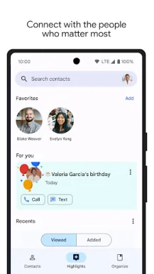 Stay connected with the people who matter most by using this app. You can view highlights such as upcoming birthdays and anniversaries, and even set notifications so you never miss a special day. The app also allows you to easily access contacts that you have recently added or viewed.