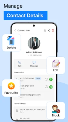 Contacts is a comprehensive communication app that offers a variety of features to make managing your contacts and making calls easier and more efficient. With its smart dialer, you can quickly find and call your favorite contacts with predictive text and smart search capabilities. The app also allows you to organize your contacts into different categories, such as family, friends, and work, for easy access. One of the key features of Contacts is its speed dial function, which allows you to save time by setting up one-touch dialing for your most frequently called numbers. You can also protect yourself from unwanted calls with the app's integrated caller ID and spam detection features, which identify unknown numbers and alert you about potential spam or fraud calls. In addition to its calling features, Contacts also offers a comprehensive call log that displays your incoming, outgoing, and missed calls with detailed information such as call duration and timestamps. You can also mark your frequently contacted numbers as favorites for quick access, and the app will automatically merge duplicate contacts and back up your contact list to the cloud. Contacts also stands out for its quick actions feature, which allows you to perform actions such as messaging, calling, or editing contact details with just a long-press on any contact. The app's intuitive interface ensures that you can navigate and use its features efficiently without any hassle. Overall, Contacts is the perfect choice for users looking for a powerful and user-friendly contact and dialer app. Its unique aftercall feature allows you to add or delete contacts after each phone call, ensuring that your contacts list is always up-to-date. So why wait? Download Contacts today and take control of your phone communication with ease and style!