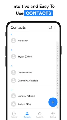 The app's intuitive keypad allows you to easily dial numbers and access frequently used contacts with just a few taps. This makes initiating calls quick and effortless. The comprehensive contact list view makes it easy to organize your contacts and find the information you need.