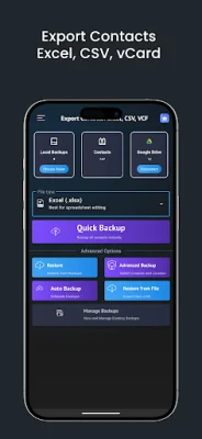 One of the key features of this app is its ability to export contacts in multiple formats. You can choose to export them as an Excel file, which makes it easy to open and manage them in Microsoft Excel or other spreadsheet programs. You can also export them as a CSV file, which is compatible with Google Contacts, Outlook, and many other apps. And for those who prefer the standard format for sharing and importing contacts, the app also offers the option to export them as a VCF (vCard) file.