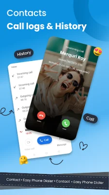 Contacts : Easy Phone Dialer is designed to be user-friendly and highly customizable. You can quickly get in touch with your contacts and manage them with smart call management features. The app also offers enhanced security for your privacy and the ability to import/export your contacts from one place to another. It even has a call spam block feature and can remind you of birthdays and calls.