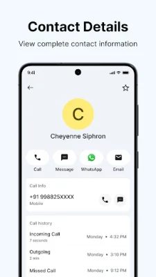 The Merge Duplicate Contacts feature helps users keep their contact list clean and organized by finding and merging duplicate contacts. This helps avoid confusion caused by repeated numbers. The app also has Quick Actions from Call History, allowing users to call back, send SMS, or add new contacts directly from their call history.