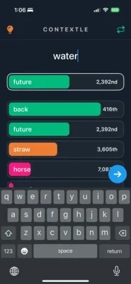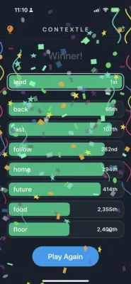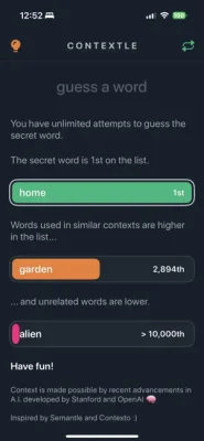 The Contextle application is a word guessing game where players must try to guess a secret word based on a list of related words. The secret word is always the first word on the list, so players must pay close attention to it. To help players make educated guesses, the list also includes words that are related to the secret word in terms of context. These related words are placed higher up on the list, making them potential guesses for the secret word. Conversely, words that are unrelated to the secret word will be lower down on the list.