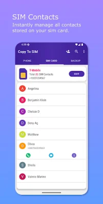 Additionally, Copy To SIM offers powerful tools for managing your contacts beyond your phone's basic settings. You can easily add, edit, or delete contacts on both your phone and SIM card, making it a one-stop solution for all your contact management needs.
