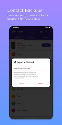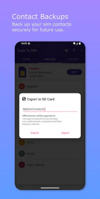 One of the key features of Copy To SIM is its ability to create secure, local backups of your entire address book directly to your device. This means that your data stays with you and is not collected, stored, or shared by the app. This ensures the utmost privacy for your personal information.