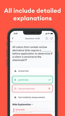 Cosmetology Exam Practice 2024 is an application designed to help individuals prepare for the Cosmetology state board exam. The app is constantly updated and revised by exam experts to align with the latest syllabus published by the National-Interstate Council of State Boards of Cosmetology. It provides users with all the necessary resources to pass the exam, including efficient test patterns, subject categorization, over 800 high-quality test questions and answer explanations, achievement tracking and analyzing system, and a user-friendly interface.