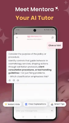 The AI Mentora app is a personal learning companion that uses artificial intelligence to help users understand complex concepts. It offers unlimited insights and acts as a dedicated tutor, available 24/7. The app also features an extensive question bank with over 600 pretest questions covering topics such as scientific concepts, skin care, nail care, and hair care. Users can also experience realistic test simulations to familiarize themselves with the format, timing, and difficulty level of the Cosmetology State Board Test.