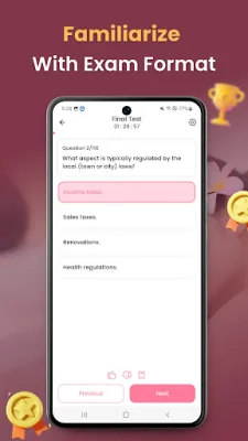 The app provides detailed explanations for each question, helping users understand the reasoning behind the correct answers and reinforcing their knowledge. It also offers performance analytics, allowing users to track their progress over time and identify their strengths and weaknesses. The app estimates the likelihood of passing the test based on the user's performance and provides targeted practice to improve their chances of success.
