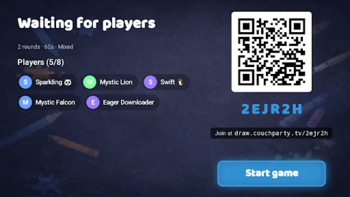 Couch Draw & Guess is an exciting game that brings the classic Pictionary-style drawing game to your living room. With this app, you can start a game on your Android TV and invite friends to join using a 6-character room code. The best part? Your friends don't even need to download the app to join in on the fun! One player will draw on their phone while everyone else watches on the TV and guesses from their own phones.