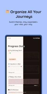 Countdown by Dots is an innovative application that revolutionizes the way you keep track of time. It offers a unique and visually appealing approach to counting down to important events in your life. Whether it's a birthday, vacation, game release, or any special date, Countdown by Dots allows you to see your journey unfold dot by dot.