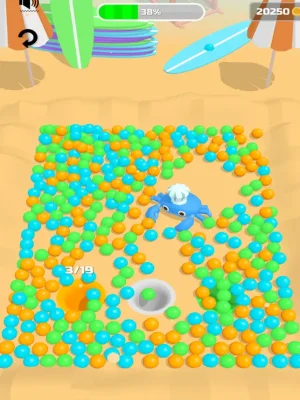 The main goal of the game is to introduce all of the colored balls into their designated holes. Each time a ball is successfully placed, the player earns points. However, the presence of bombs adds an element of risk and challenge to the game. If a bomb is accidentally placed in a hole, it can ruin the player's progress and potentially end their run. This adds a level of excitement and urgency to the game, as players must carefully strategize their moves to avoid the bombs.