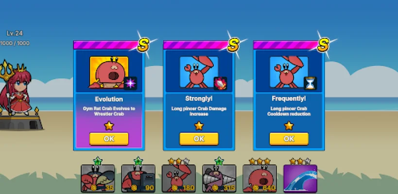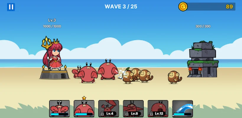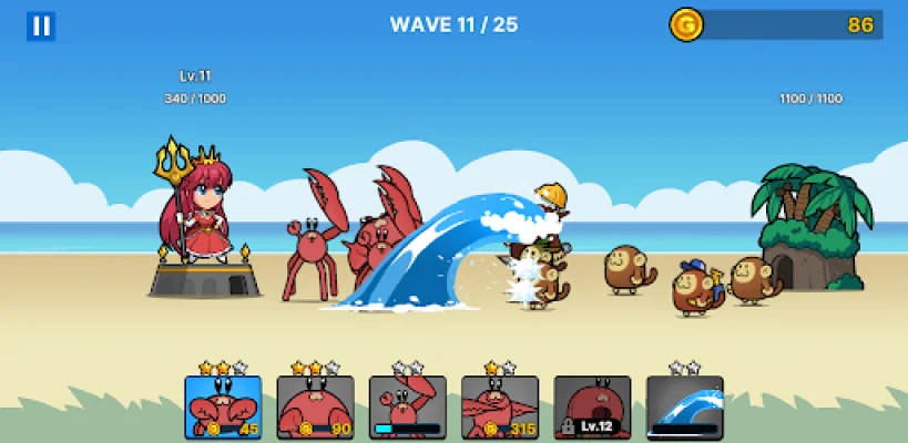 Welcome to our exciting new game where you can join in on a thrilling war against crabs and monsters! As you progress through the stages, you will have the opportunity to earn new crabs to add to your army. These crabs will help you in your battles against stronger enemies and their production bases. It's time to show these creatures who's boss!