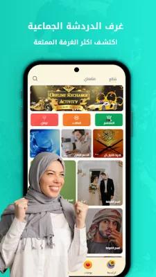 بالإضافة إلى ذلك، يمكنك الاستمتاع بالدردشة حول مواضيع مختلفة وتصفح غرف دردشة من جميع أنحاء العالم، حي