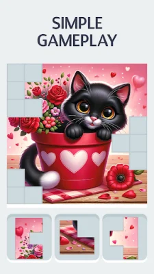 The gameplay involves moving pieces into blank fields until the entire picture is revealed. This requires strategic thinking and problem-solving skills, as players must figure out the correct placement of each tile to complete the image. As the game progresses, the puzzles become more challenging, providing a sense of accomplishment when solved.