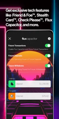 Cred.ai also offers traditional banking services, such as early access to direct deposit funds, free ATM access, and FDIC insurance for deposits up to $250,000. They also have a feature called Flux Capacitor, which automatically protects users against future charges and withdrawals. And while these may seem like boring details, they are important to ensure the safety and security of users' finances. Cred.ai also guarantees to never share user data and is certified by PCI DSS and EI3PA.