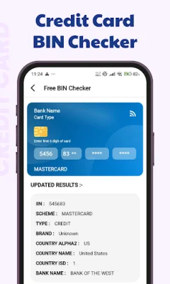 In addition, the app offers a BIN lookup feature, which allows you to learn about the Bank Identification Number (BIN) information of a card. This helps you understand which bank or network the card belongs to, using publicly available databases. The app also includes a smart calculator that can help you calculate EMI, monthly payments, interest, and payoff time in a simple and clean interface.
