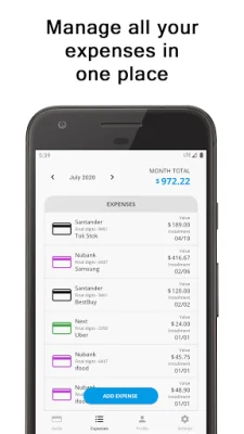 With our application, you can also split expenses into installments on your chosen card, with the option to split up to 60 times. If your card bill has already been closed, the purchase will be added to the following month's bill. To better understand this feature, check out our "Best Buy Date" section.