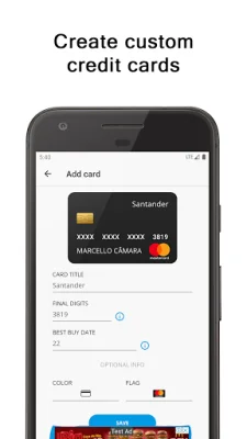 Speaking of the "Best Buy Date," our application takes into account the date of your credit card's best purchase when adding new expenses. If the date of the expense is before the best purchase date, it will be added to the same month. However, if the date is after the best purchase date, it will be automatically added to the following month's expenses.