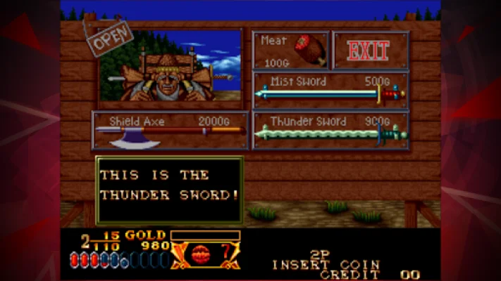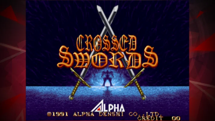 CROSSED SWORDS, originally released in 1991, is an action game where players must defeat the demon Nausizz by using Weapon Attacks, Magic Attacks, and their Defend ability. The game features seven intense stages and can be played by up to two players simultaneously with its unique 3D perspective. As players progress, they can accumulate GOLD to purchase weapons and their characters will also grow stronger through an RPG-like system.