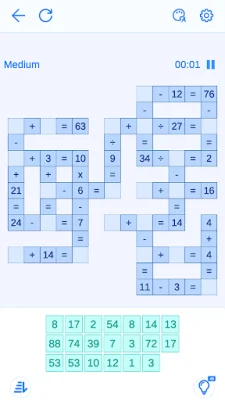 But that's not all - Crossmath also offers power-ups to help you solve puzzles faster. These include hints, advanced notes, and more. With its array of features, this math puzzle game guarantees hours of fun and challenge. So why wait? Download Crossmath today and put your problem-solving abilities to the test! Become a Crossmath pro and math maestro in no time!