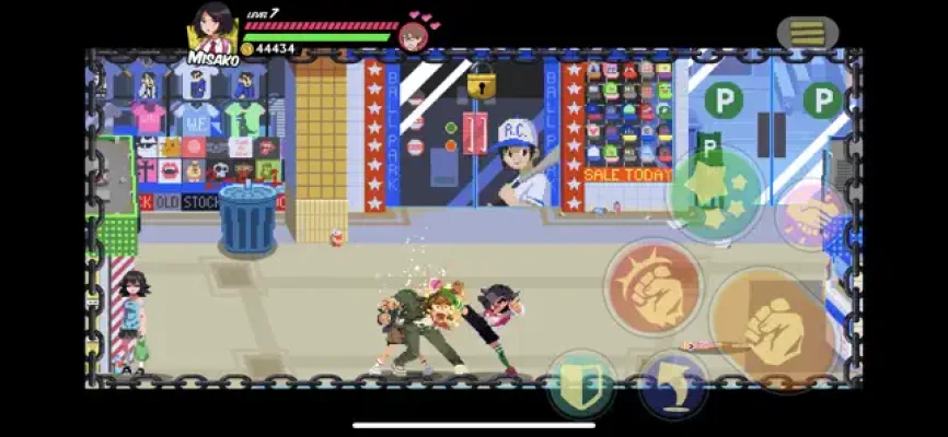 Crunchyroll Mega Fan or Ultimate Fan Membership is required to access this application. The game is set in the dangerous streets of River City, where two fierce heroines, Misako and Kyoko, are on a mission to save their boyfriends, Kunio and Riki. The game features intense beat-'em-up action, with players using a variety of skills, power-ups, weapons, and combos to defeat their enemies in a retro pixel-art style. The game also includes motion-comic story panels, anime cutscenes, multiple endings, and a synth-pop soundtrack to enhance the gaming experience. The game can be played solo with touchscreen controls or with a Bluetooth controller, and also offers a two-player co-op mode with Bluetooth controllers.
