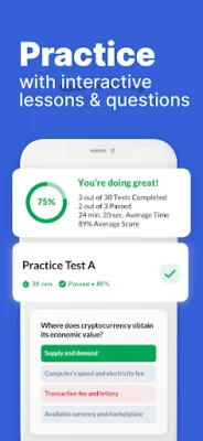 The app also offers the ability to track progress through chapters and lessons, as well as test scores and average time. Users can easily pick up where they left off with the "Continue Studying" shortcut. And for those who want to study on the go, the app has a full offline mode, allowing access to all lessons, quizzes, and tests without an internet connection.
