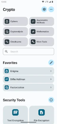 The app also offers powerful secure communication tools, such as certificates and key exchange, as an added security measure for untrusted messaging or email services. The tools section includes a variety of ciphers, cryptanalysis methods, mathematical functions, and asymmetric methods. It also offers options for hash and HMAC, MAC, KDF, and encoding/decoding.