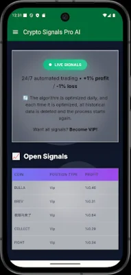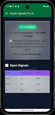 Crypto Signals Pro AI is a cutting-edge application that uses artificial intelligence, technical indicators, and structured data analysis to help users understand the movements of the cryptocurrency market. It provides real-time market observations, trend insights, and AI-powered crypto signals in a user-friendly mobile interface.