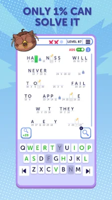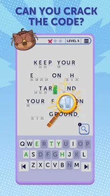 The game challenges you to use your logic, pattern recognition, and word knowledge to decode the message and complete the full hidden quote to finish the level. It features classic cryptogram word puzzles with famous quotes and meaningful phrases. And the best part? There's no time pressure, so you can take your time and enjoy the brain training experience.