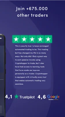 Cryptohopper is a trading application that allows users to automate their trading actions and execute trades 24/7. This saves time and reduces stress and screen-time for traders. The app also offers automated technical analysis and a variety of risk management tools such as DCA, Stop-Loss, and Trailing-Features to minimize risk. Additionally, users can easily diversify their portfolio through the app.