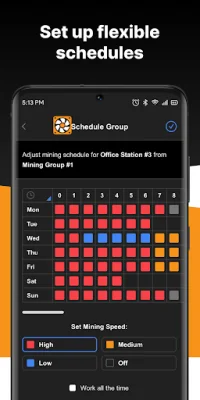 The app also offers a user-friendly interface, making it easy for beginners to use. For more experienced users, there are advanced options for configuring the farm. You can also use the scheduler to set the mining speed for specific hours or days, monitor your farm remotely, and receive push notifications for important announcements and changes. Your earnings are also protected, as you will never lose access to your farm and can withdraw your funds at any time with no limitations.
