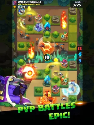 The game offers a variety of animal heroes, such as the Night Hunter Owl, The Queen's Guard Wolf, and The Alchemist Squirrel. Players can also choose from a wide range of defensive towers and spells to strengthen their defense. With thousands of battle maps to explore, players can build their own line of defense and combat formations. They can also combine similar towers to increase their power and join clans to play with friends.