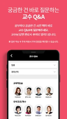 5. 교수 Q&A: 간편하게 텍스트나 사진을 첨부하여 질문할 수 있으며, 강의, 교재, 학습방법 등에 대한 질문에는 교수님이 직접 답변해줍니다. 교수님의 답변이 완료되면 푸시 알림을 받을 수 있습니다. (※질문 작성 후 푸시 설정 필수)