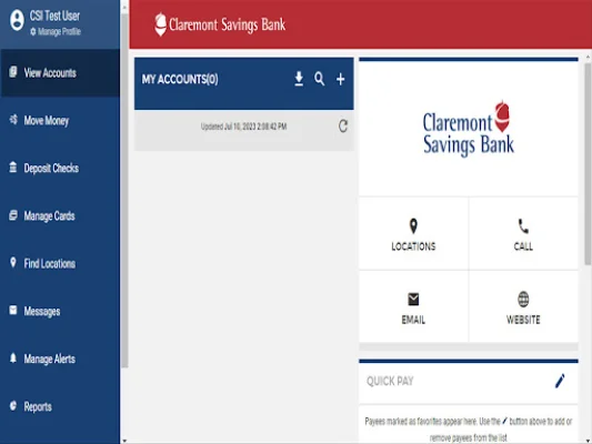 CSB Mobile - Claremont Savings is a mobile application that allows you to conveniently manage your banking needs on-the-go. With this app, you can deposit checks, transfer money between your CSB Mobile - Claremont Savings accounts and accounts at other banks, pay bills, and even pay your friends. You can also view your account balances and search through your transaction history. Additionally, the app provides a feature to help you locate nearby branches and ATMs for your convenience.