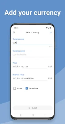 For those who may need to convert a currency that is not included in the exchange rate list, the app allows for manual addition of any currency. This feature adds to the app's versatility and ensures that users can convert any currency they need, making it a truly comprehensive currency conversion tool. With its user-friendly interface and convenient features, the "Currency Converter" app is a must-have for anyone in need of quick and accurate currency conversions.