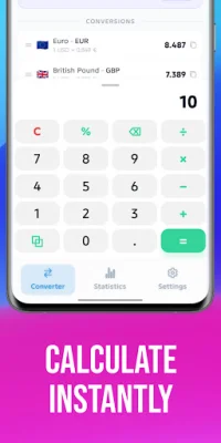 In addition to its currency conversion capabilities, the app also includes a built-in calculator for performing currency calculations directly within the app. Users can add, subtract, multiply, divide, and apply percentages without having to switch to another app.