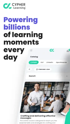 The CYPHER Learning mobile app is a new and improved way to train and learn. It is designed to support learning in the flow of work, making it faster and more intuitive. This all-in-one, AI-powered platform is perfect for organizations of all sizes, whether it's onboarding new employees, training partners, ensuring compliance, or closing skill gaps. The app keeps learners, managers, and admins connected, productive, and moving forward, no matter where they are.